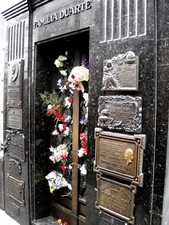Le cimetière de la Recoleta où reposent de nombreuses célébrités, écrivains et hommes politiques. La plus connue et la plus vénérée encore à ce jour est la tombe d'Evita Peron, légendaire femme du président Peron.