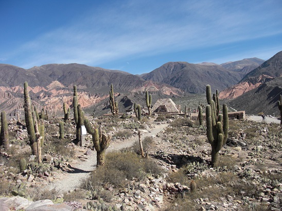 Direction le nord et de la célèbre vallée d'Humahuaca, classée au patrimoine mondial de l'Unesco. La végétation, d'abord dense et subtropicale aux abords de Salta, laisse rapidement la place à une vallée aride aux couleurs étonnantes. Arrêt au village de Tilcara surplombé par le site pré-inca de Pucara.