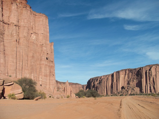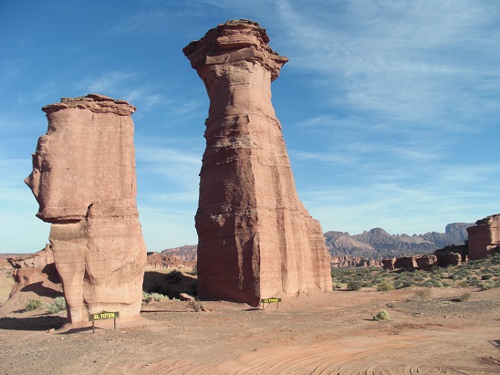 Départ pour rejoindre le magnifique Parc de Talampaya situé à 70 kilomètres par une route en bon état. Nous partons pour un tour de 3 heures environ opéré par le Parc National, il est donc impossible de circuler avec son propre véhicule alors nous empruntons les autobus du parc. Le parc de Talampaya a une superficie de 215 000 hectares, et fut créé en 1975 pour sauvegarder les vestiges archéologiques et paléontologiques présents dans un environnement de toute beauté.