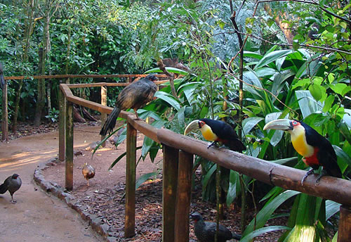 Visite du Parc aux Oiseaux où sont réunies dans une immense volière toutes les espèces d’oiseaux de la région, sans oublier quelques espèces composant la riche faune locale, anaconda, boa, singes et papillons.