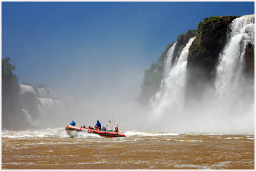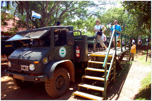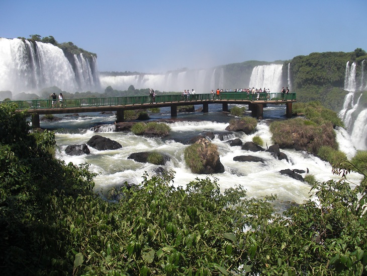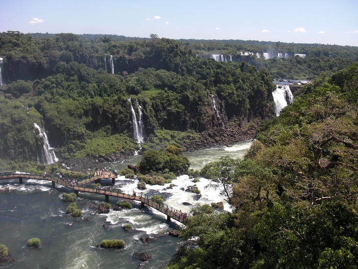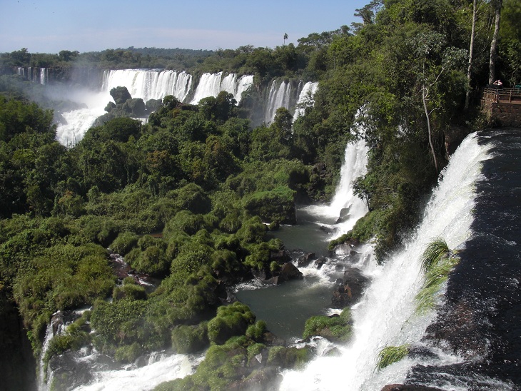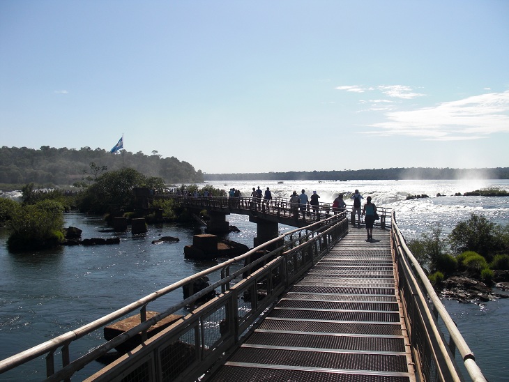 Cheminement du côté argentin auquel on peut accéder après avoir emprunté un train écologique sur une voie d’environ quatre kilomètres à travers la forêt. Des sentiers tortueux à travers la forêt et des passerelles spécialement aménagées offrent un accès au plus près de ce décor onirique dominé par l’impressionnante Gorge du Diable qui culmine à prés de cent mètres de hauteur. Il est possible d’effectuer deux parcours, dont le parcours haut où les passerelles coupent le flot permettant de surplomber les chutes.