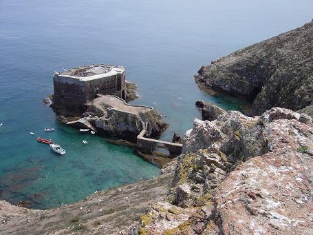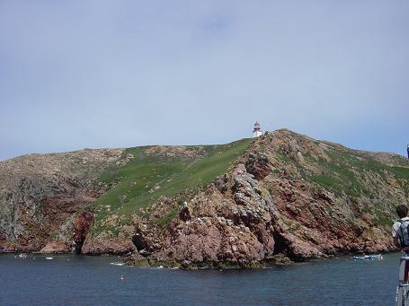 Excursion sur l'ile berlenga. Cette petite île située au large de Peniche et réserve naturelle comporte un phare, propriété de l'armée portugaise, un fort pentagonal, qui a été tour à tour, un monastère, une prison et à présent une auberge. De nombreux goëlands la peuplent.