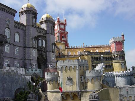 Visite du palais de Pena ( XIXe siècle). Dressé sur l’une des cimes de la Serra de Sintra, au cœur d’un parc de 200 hectares de la ville de Sintra, le Palais de Pena se caractérise par son éclectisme architectural et ses couleurs vives, jaune et rouge. Ce magnifique monument est le premier Palais Romantique d'Europe. Belle vue sur le château des Maures.
