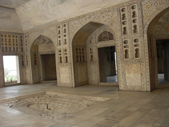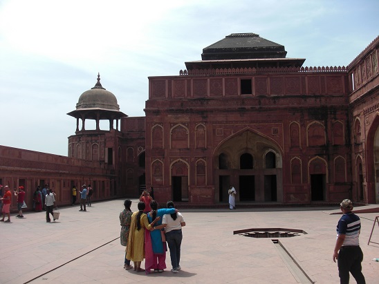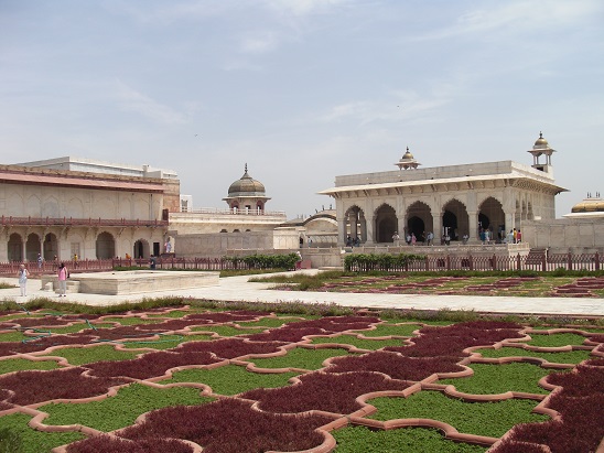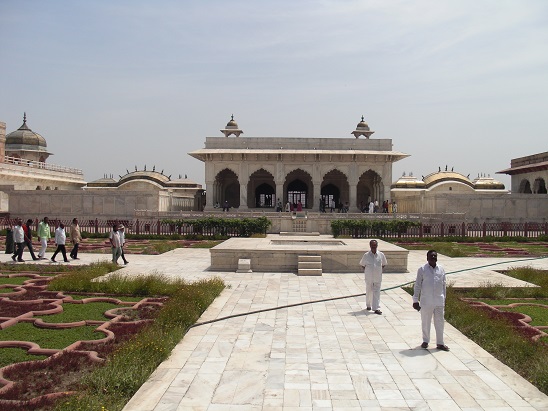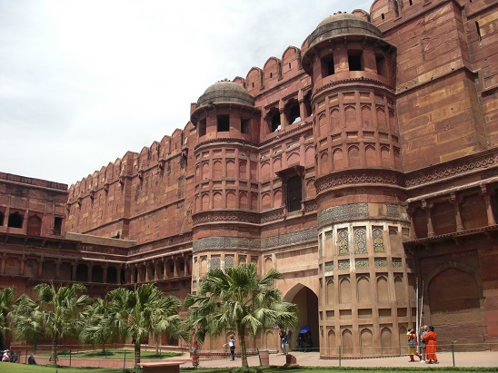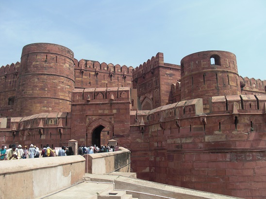 Découverte des bâtiments du fort Rouge, révélateur de la puissance de l'empire moghol. Construit par Akbar au XVIe siècle, le fort fut créé pour répondre aux besoins d'une forteresse militaire d'où gouvernait l'empire moghol en plein essor. Pour édifier une citadelle imprenable, Akbar ordonna de l'encercler par près de 2,5 km de murs à tourelles monumentaux et par de larges douves. Le fort fut partiellement transformé en palais par Shah Jahan. Ses murs massifs de 25 m de haut abritent une succession de palais, kiosques et pavillons, dont la célèbre mosquée de la Perle finement ciselée.
