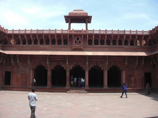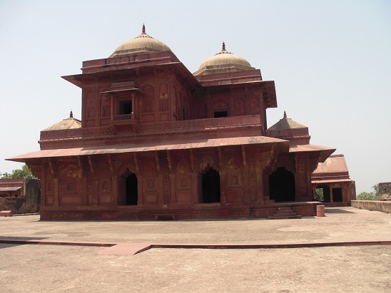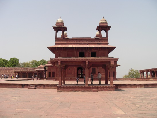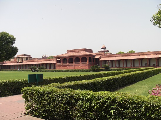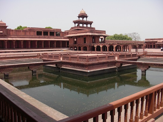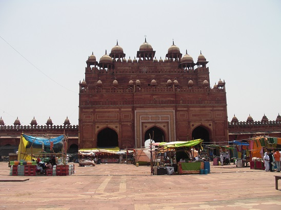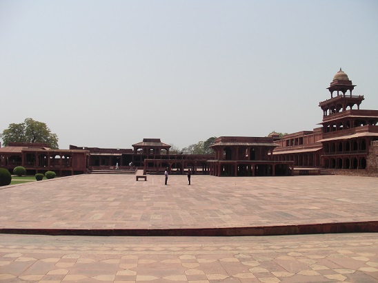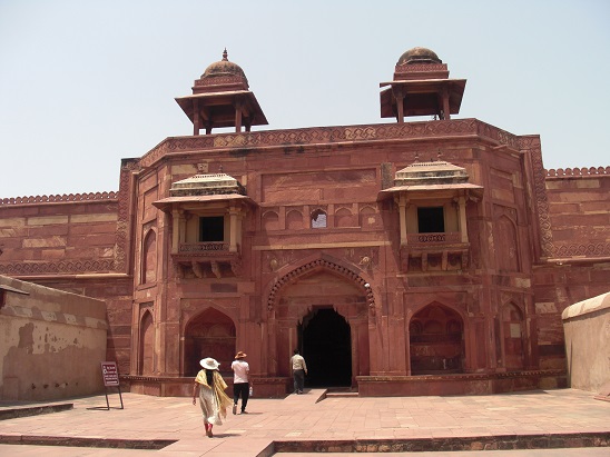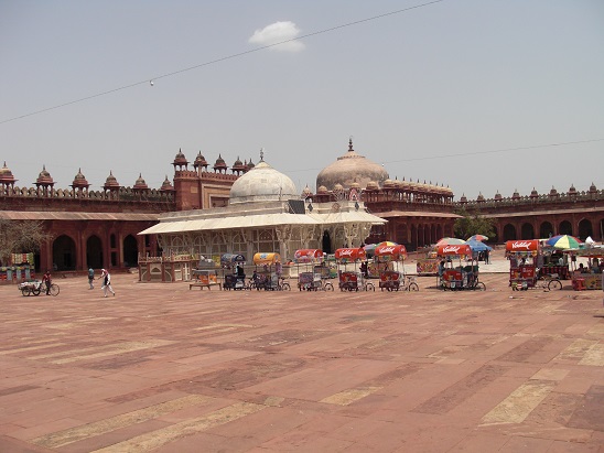 Route vers Fatehpur Sikri et ses ruines impériales, magnifique site inscrit au patrimoine mondial de l'Unesco. Dominant le plateau poussiéreux au sud-est d'Agra, cette ancienne et gigantesque capitale moghole, abandonnée en raison du manque d'eau au XVIe siècle, est restée presque intacte. Elle fut la capitale la plus éphémère et peut-être la plus splendide de l'empire moghol. L'empereur Akbar la conçut comme une ville "moderne" utopique et son architecture dévoile la personnalité brillante et énigmatique de son souverain. Le style indien est ici combiné à celui d'Iran et d'Asie centrale, comme un symbole de l'ouverture d'esprit pour lequel Akbar fut encensé.