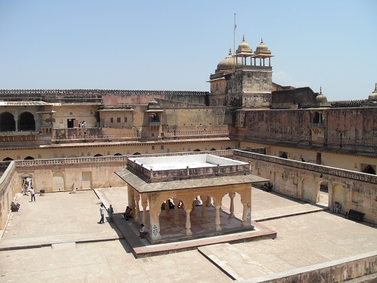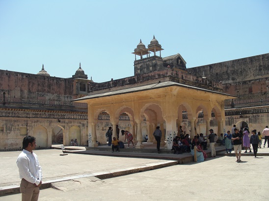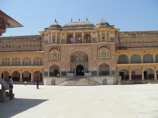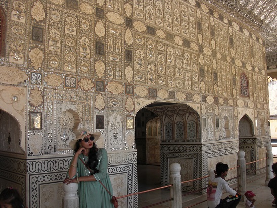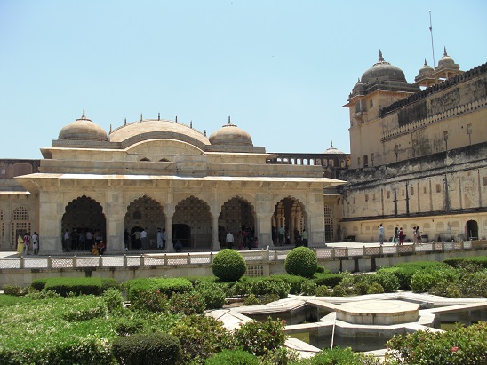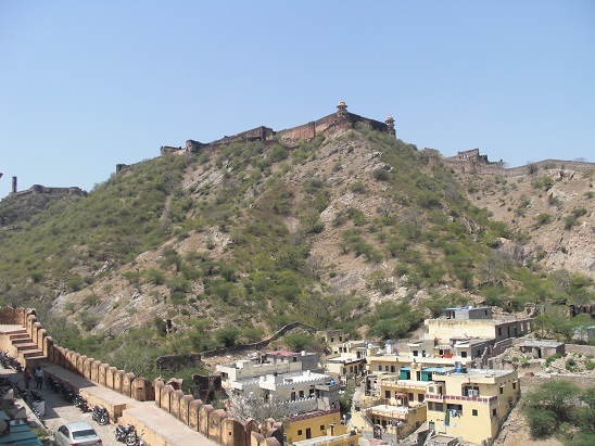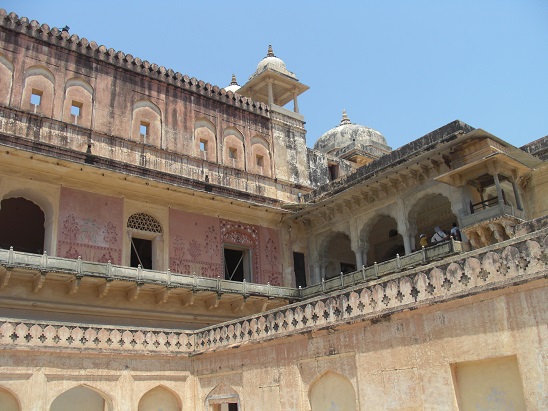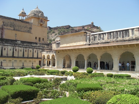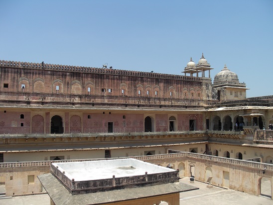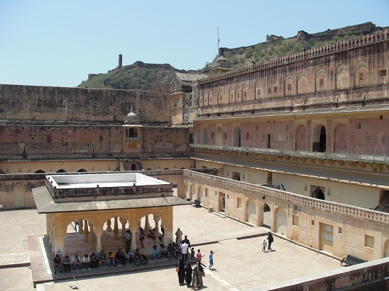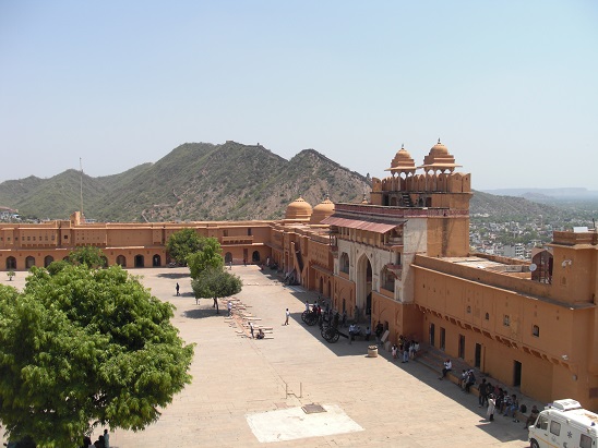 Excursion au fort d'Amber, qui offre une vue unique sur la chaîne des Aravallis. Construit au XVIe siècle en l'honneur d'une visite de l'empereur moghol Akbar, puis complété par Jai Singh Ier au XVIIe siècle, il présente un dédale de cours, pavillons et miroirs qui rappellent la gloire et la prospérité des souverains rajpoutes. Visite du palais qui comprend des salles de réception ornées de peintures délicates ou incrustées de miroirs.