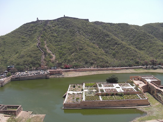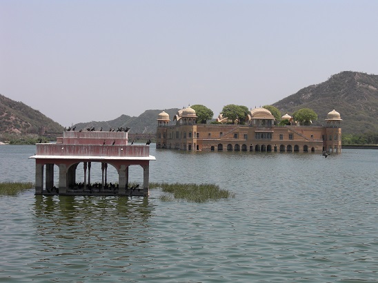 Coup d'oeil au Jal Mahal, le palais sur l'eau, situé au milieu du lac Man Sagar.