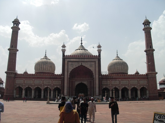 Découverte de la grande mosquée Jama Masjid, la plus grande mosquée d'Inde, face au fort Rouge. Construite principalement en grès rouge et marbre blanc et décorée d'exquises incrustations mogholes, elle fut commencée par Shah Jehan en 1644 et achevée par Aurangzeb 14 ans plus tard.
