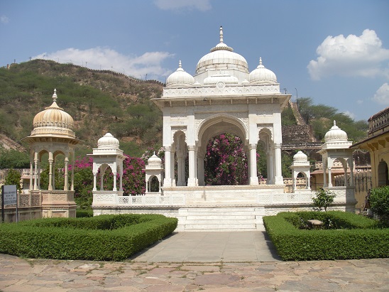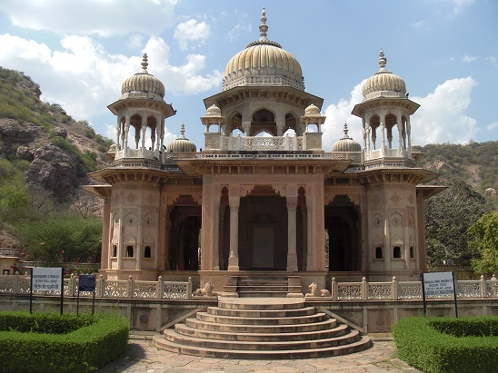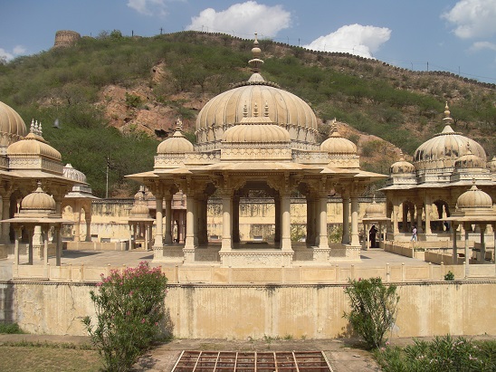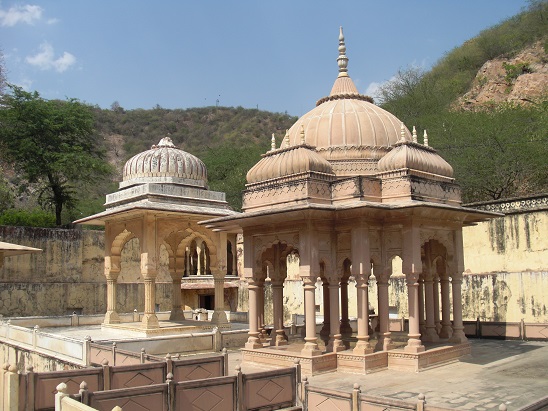 Visite des cénotahes de Gaitor, ou s'élèvent une vingtaine de kiosques à coupoles sur le lieu de crémation des maharajas et des princes de la dynastie des Kachhavas. Le plus ancien est le cénotaphe de Jai Singh II.