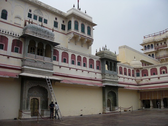 Route pour Jaipur et début de la visite de la ville : le City Palace, coeur symbolique de la capitale où le maharajah a toujours ses appartements. Construit au XVIIIe siècle, le palais de Jai Singh est une métropole miniature enchantée, qui occupe un septième de la superficie de la vieille ville et combine avec bonheur les styles moghol et rajpoute. Il a été en partie aménagé en musée de miniatures et de costumes, dont les riches collections sont un ravissement.