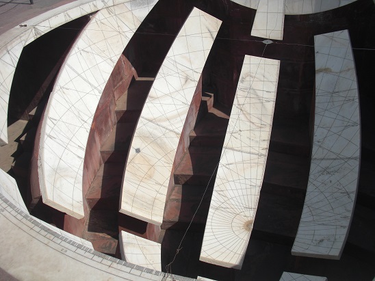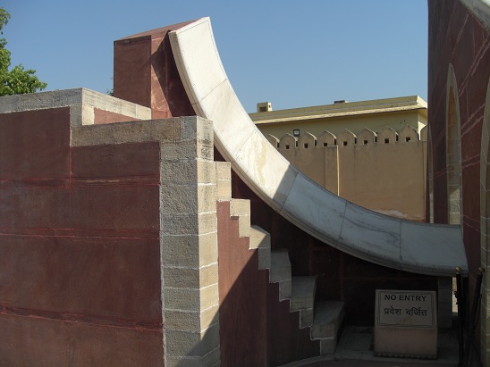 Visite de l'observatoire Jantar Mantar de Delhi. Maharaja Jai Singh de Jaipur qui a construit cet observatoire a ensuite construit d'autres observatoires à Ujjain, Varanasi et Mathura.