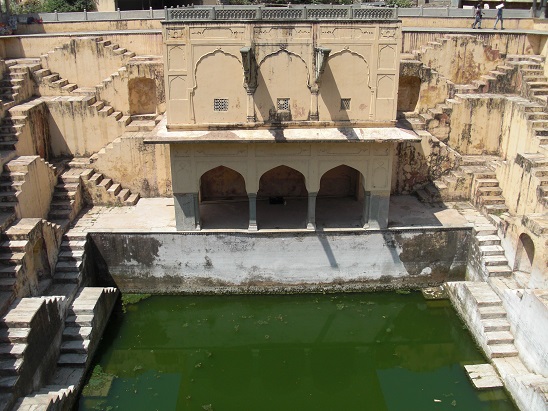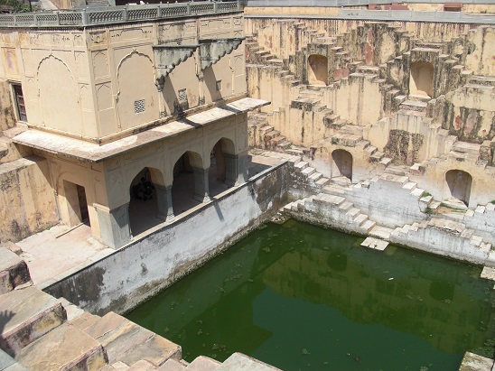 Coup d'oeil au puits à degrés Panna Meena Ka Kund. Construit au 16e siècle, il était un lieu de rencontre de la population qui venait y puiser de l'eau et s'y baigner.