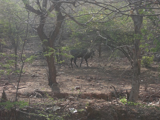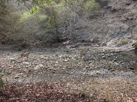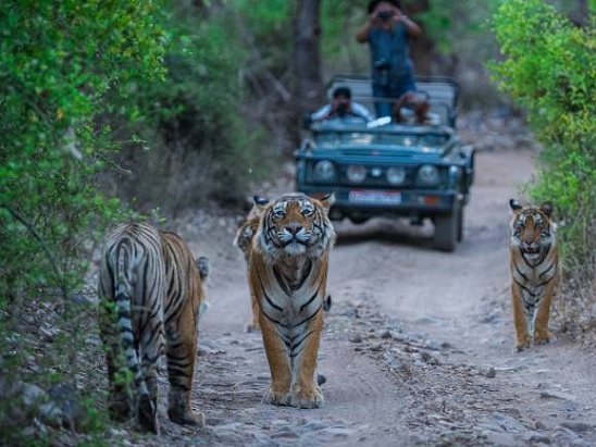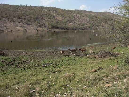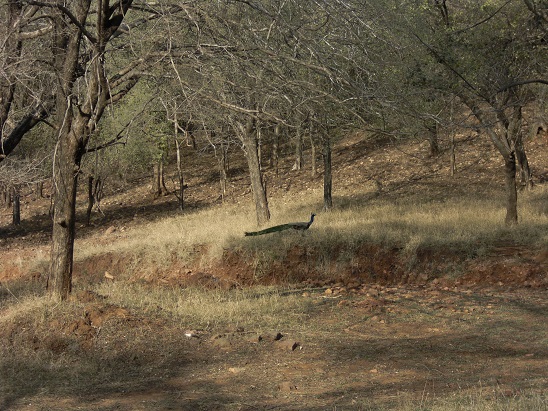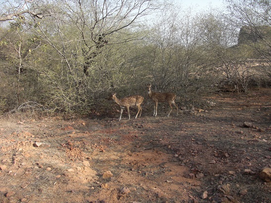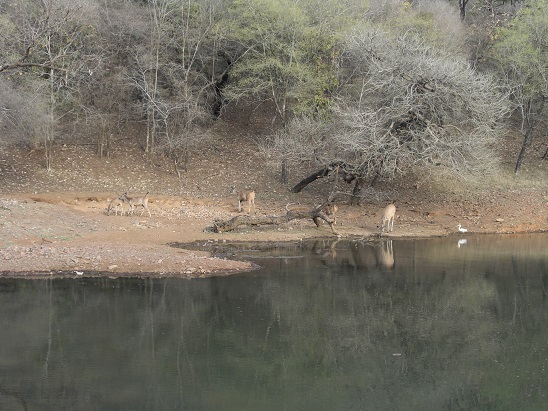 De bon matin, premier safari à travers les chemins tracés dans l'immense réserve de Ranthambore, d'une étrange beauté puis 2ème safari en fin d'après-midi. (2x3 heures de safari à bord d'une jeep). Enchâssée au milieu d'escarpements abruptes, cette jungle broussailleuse qui s'étire sur 1 334 km recèle des temples et des mosquées en ruine, le fort Ranthambore datant du Xe siècle, des lacs peuplés de crocodiles, des "chhatri" et des "caches" pour surprendre le gibier. II s'agit en effet d'un ancien territoire de chasse des maharajas, activité qui se poursuivit jusqu'en 1970