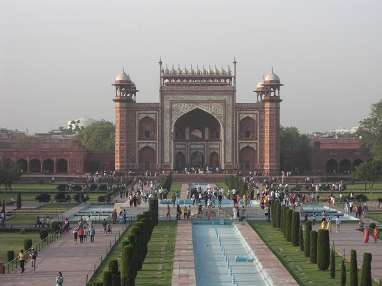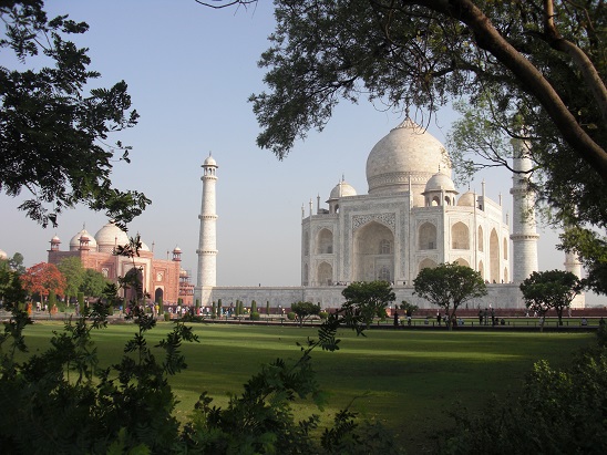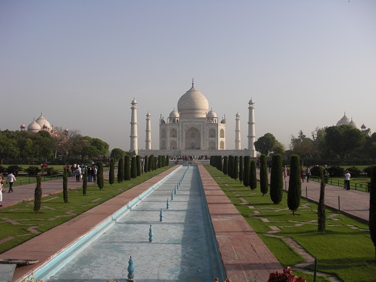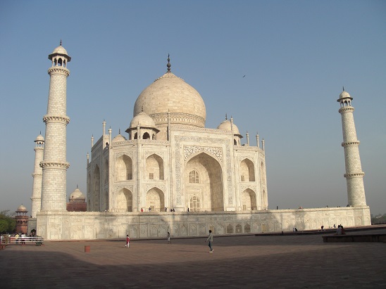 Au milieu de jardins fleuris évocateurs du paradis d'Allah, reflété dans l'eau des étroits bassins, le Taj Mahal, lumineux mausolée de marbre blanc, s'offre à tous les regards. Agra doit sa splendeur et sa renommée à la présence de ce joyau de l'art musulman, le plus emblématique de l'Inde, construit par l'empereur moghol Shah Jahan pour immortaliser son amour pour son épouse Mumtaz. Soin des décors, finesse du travail de la pierre, il est l'un des chefs-d'ouvre universellement admirés du patrimoine de l'humanité.Le mausolée fut achevé en 1659 après 22 ans de travaux titanesques et la participation au chantier de dizaines de milliers d'ouvriers venus des quatre coins du monde. Le mystère demeure encore quant à l'identité de l'architecte.