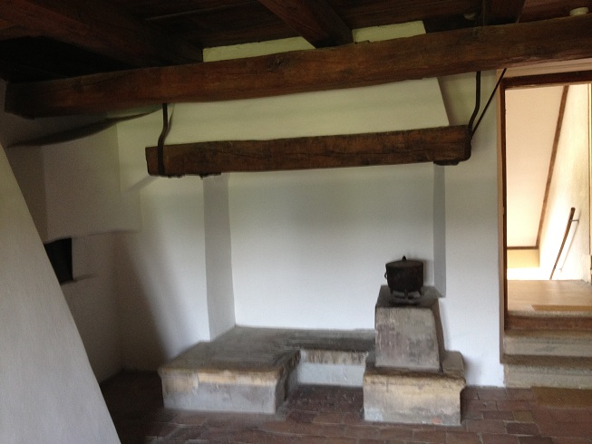 Intérieur du donjon."J'avois fait de ce Donjon mon cabinet de travail, en sorte que j'y avois une table couverte d'épreuves et de feuilles de l'Emile et du Contrat Social, et brochant ces feuilles à mesure qu'on me les envoyoit j'avois là tous mes volumes longtems avant qu'on les publiât "