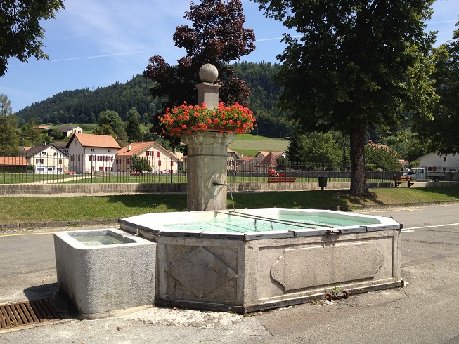 "J'ai sous ma fenetre une très belle fontaine dont le bruit fait une de mes délices. Ces fontaines, qui sont élevées et taillées en colonnes ou en obelisques et coulent par des tuyaux de fer dans de grands bassins sont un des ornemens de la Suisse. Il n'y a si chetif village qui n'en ait au moins deux ou trois, les maisons écartées ont presque chacune la sienne et l'on en trouve même sur les chemins pour la comodité des passants, hommes et bestiaux. Je ne saurois exprimer combien l'aspect de toutes ces belles eaux coulantes est agréable au milieu des rochers et des bois durant les chaleurs, l'on est déja rafraichi par la vue, et l'on est tenté d'en boire sans avoir soif."