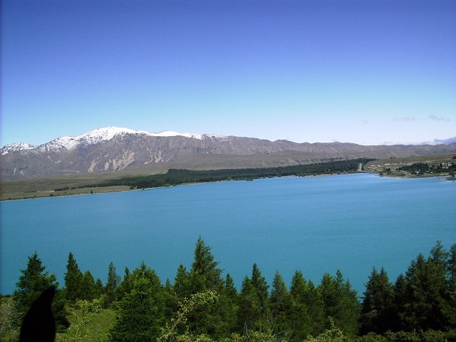 Route vers le lac Tekapo. Traversée du Parc National du Mont Cook qui est la plus grande montagne de Nouvelle Zélande s’élevant à 3754 mètres, on longe le lac Pukaki puis on arrive au lac Tekapo.