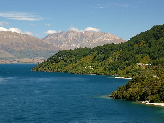 Descente en direction de Queenstown, la capitale de l'aventure. Bordée elle aussi par un lac, le lac Wakatipu, elle est entourée de montagnes et propose de multiples activités sportives.