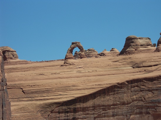 Visite de "Arches NP": Ce parc compte 20 00 arches naturelles environ, la plus forte concentration au monde, mais aussi des pics, des tours, des forteresses crénelées et des dunes où le rouge prédomine avec quelques taches de blanc et d’ocre. Delicate Arch et Landscape Arch sont parmi les plus belles du site, composé de 6 sections, comprenant toutes de nombreux sentiers de randonnées.