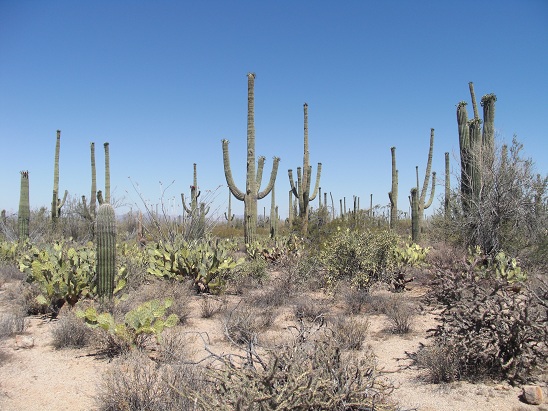 Visite du Parc National de Saguaro possédant différentes variétés de cactus, des coyotes, des géocoucous.