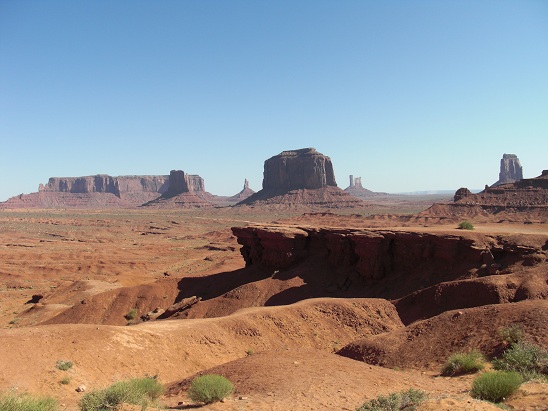 Visite de Monument Valley : Site connu du monde entier grâce aux westerns de John Ford. C’est un lieu extraordinaire où l’érosion a sculpté d’énormes monolithes de grès, à des degrés divers d’évolution : mesas, buttes, aiguilles, arches, dunes aux couleurs variant selon la lumière. La piste circulaire ouverte aux particuliers ne laisse apercevoir qu’une petite partie du paysage mais des tours en véhicule tout terrain guidés par les Navajos permettent d’explorer les endroits reculés.