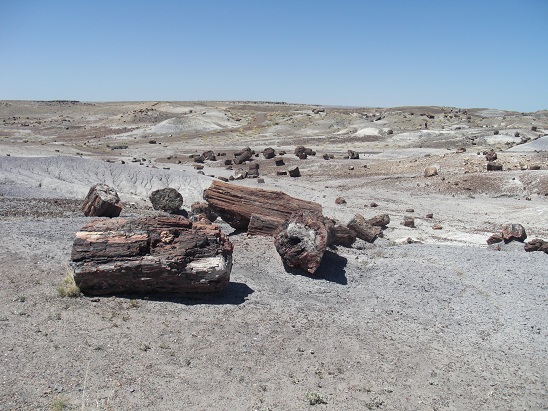 Passage par la forêt pétrifiée via "Painted Désert".