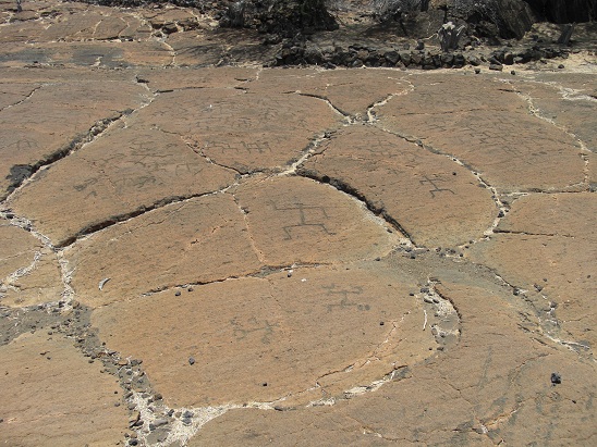 Marche dans le "Puako Petroglyph Park" qui regroupe le plus grand ensemble de gravures rupestres de Big Island.