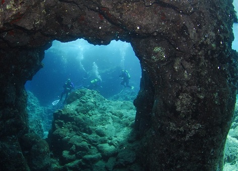 Plongée à "Kee'i" dans des cavernes de lave. Nombreuses murènes et poissons multicolores. Tortue. (9m, 60´).