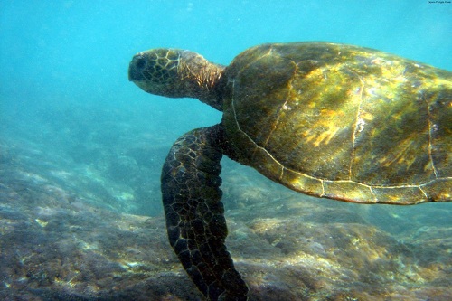 Route pour la côte Est par le Sud (N° 11). Plongée à "Honaunau Bay" avec les dauphins et les tortues. Nombreuses murènes et poissons multicolores. (21m, 56´).