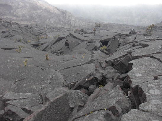 Découverte du Parc National des volcans, parcours des 19 km du "Crater Rim Drive" pour découvrir les paysages impressionnants et désolés composés de lave séchée, de cratères et de broussailles.