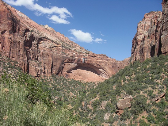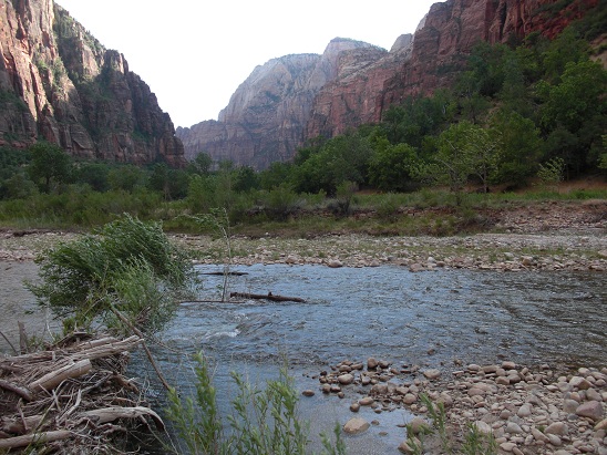 Route vers Zion et visite de "Zion NP": Ce parc est caractérisé par d’immenses cheminées de grès verticales aux sommets d’un blanc éclatant, qui s’élèvent à plus de 350 m du sol, d’une adorable vallée dans laquelle la Virgin River serpente le long de prairies et de forêts verdoyantes et de rochers rouges encaissés.